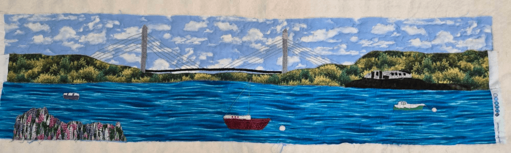 My foot has healed enough that I was able to custom quilt this customer’s quilt, designed by Patty at BOLT in Bucksport.