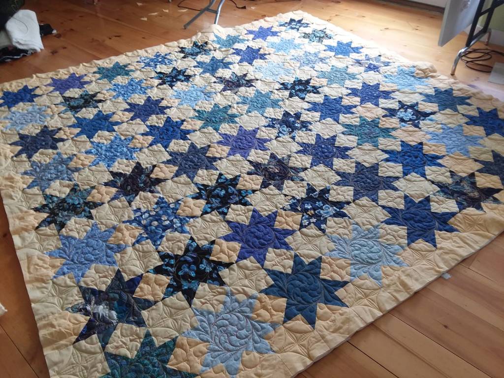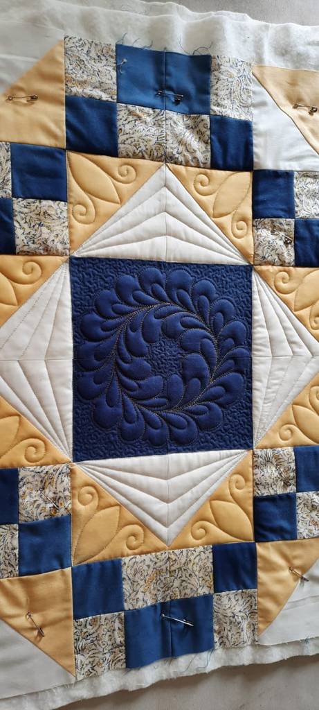 Quilting is priced by the square inch. Measure the length and width of your finished quilt top and multiply them together. For overall designs the price is $0.025 per square inch. I do not offer pantographs, but will quilt an overall design such as stipple, paisley, feathers, flowers/leaves. For semi-custom design the price is $0.04 per square inch.